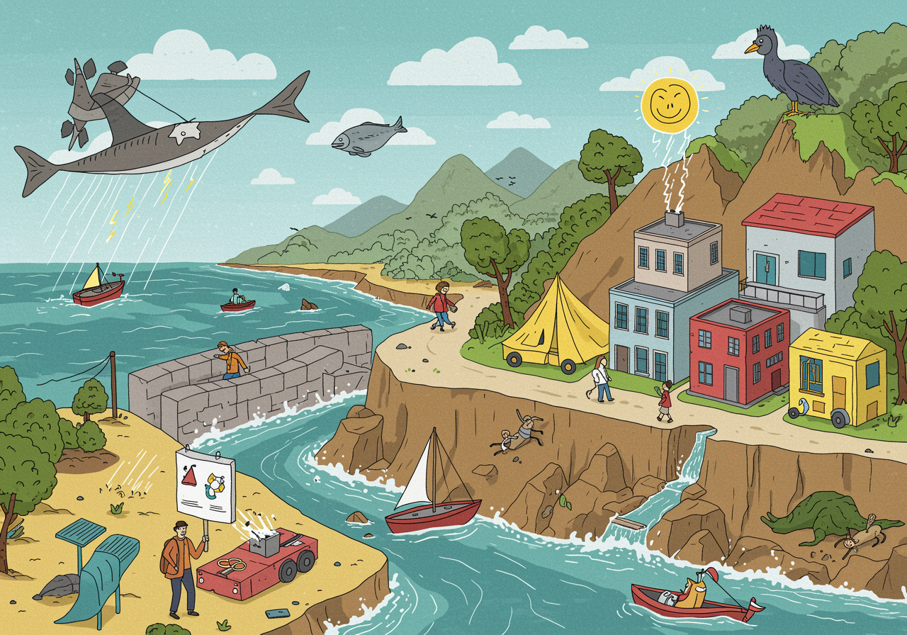 - Role play: Take turns being the mayor, a scientist, and a worried parent. Discuss what decisions you'd make about building sea walls, moving buildings, or finding new solutions.
